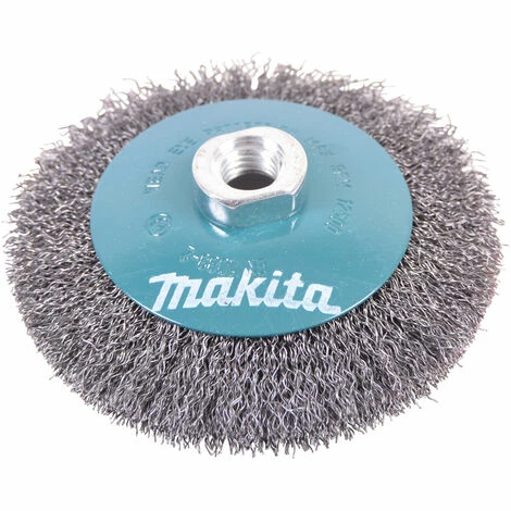 - KegelbĂŒrste Ă 115 mm mit gewellten 0,3 mm starken DrahtbĂŒrsten aus Messing.