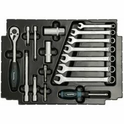 - Enthält unter Anderem eine 3/8″ – Ratsche, SteckschlĂĽsseleinsätze, Adapter, Verlängerungen, KombischlĂĽssel 8 – 15 mm, 1/4″ – Ratsche, SechskantschlĂĽssel 1,5 – 8 mm, Bithalter und die gängigsten Bits.