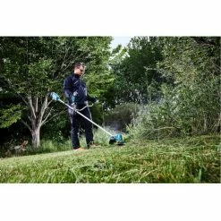 Akku-Rasentrimmer mit automatischer Drehzahlregulierung in drei Stufen. Zum Trimmen von Grünflächen. Mit U-Handgriff.18 V Akku-Rasentrimmer für das professionelle Trimmen von Grünflächen. Ausgestattet mit einer automatischen Drehzahlregulierung zur Anpassung der Geschwindigkeit je nach Belastung und einem starken bürstenlosen Motor. Niedrige Vibrations- und Geräuschpegel und gute Ergonomie sorgen für eine hohe Benutzerfreundlichkeit.