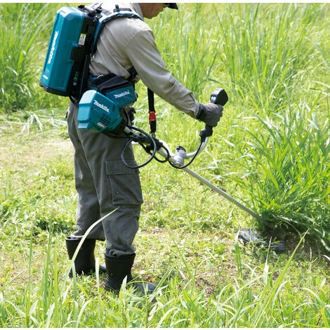 - Leistungsstarker Akku-Freischneider mit ergonomischem Zweihandgriff kompatibel mit rückentragbarem Akku