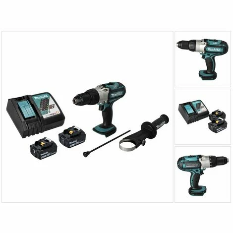 Der Makita DHP 451 ist ein 18 Volt starker, Li-Ion betriebener Akku Schlagbohrschrauber mit einem 3-Gang Vollmetall-Planetengetriebe und abschaltbarem Schlagwerk. Das Drehmoment lässt sich in 16 Stufen und einer separaten Bohrstufe präzise einstellen. Die DHP 451 besitzt zudem einen Rechts-/Linkslauf, einen Zusatzgriff für einen besseren Halt und einen Tiefenanschlag. Die integrierte LED-Leuchte ermöglicht zudem das Arbeiten an schlecht beleuchteten Arbeitsplätzen.