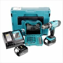 Der Makita Akku Schlagschrauber DHP 453 Solo verfĂŒgt ĂŒber ein abschaltbares Schlagwerk, Rechts- /Links-lauf und elektronische Drehzahlregulierung. Das Drehmoment ist in 16 Stufen plus Bohrstufe einstellbar. Durch den gummierten, ergonomischen Handgriff und die kompakte Bauweise ist sicherer Halt und komfortables Arbeiten garantiert. Mit dem 60-teiligen Bit und Bohrer Set ist zudem immer der richtige Aufsatz zur Hand.