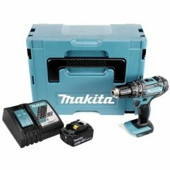 Der Makita DHP 482 Schlagbohrschrauber mit 2-Gang-Vollmetall-Planetengetriebe und MetallzahnrĂ€dern verfĂŒgt ĂŒber einen kraftvollen, 4-poligen Gleichstrommotor. AuĂerdem hat dieser Schlagbohrschrauber eine 21-fache Drehmomenteinstellung plus extra Bohrstufe und eine Schlagfunktion. Die XPT (eXtreme Protection Technology) schĂŒtzt die Maschine vor Staub und Spritzwasser, was die Lebensdauer des Schraubers merklich erhöht. ZusĂ€tzlich ĂŒberzeugt der DHP 482 durch sein integriertes LED-Licht zum Ausleuchten der Arbeitsstelle, der elektronischen Motorbremse und dem 13 mm Schnellspannbohrfutter. Der Schlagbohrschrauber wird in einem praktischen Makita Makpac 2 incl. Schaumstoffeinlage geliefert.