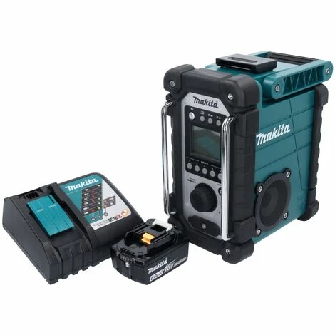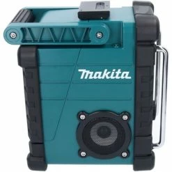 Das DMR 107 Baustellenradio von Makita, ĂĽberzeugt wie immer durch die hohe Klangqualität und das robuste Gehäuse. Das mit einem Tragegriff ausgestattete Gehäuse ist an den äuĂźeren Rändern gummiert und jegliche Ă–ffnungen sind staub- und schmutzfest verschlossen und zusätzlich gegen Spritzwasser geschĂĽtzt ( IP64 ). Ein groĂźes LCD-Display mit Beleuchtung ermöglicht eine einfache manuelle oder vollautomatische Sendereinstellung. Der Sendersuchlauf und die Lautstärkeregelung werden vereinfacht ĂĽber den Drehknopf gesteuert und reduzieren den Umgang mit dem Radio aufs einfachste. Sollte der Musikwunsch nicht im Radio zu finden sein, besitzt das DMR 107 auch einen Aux-Anschluss, um den eigenen iPod oder MP3-Player anzuschlieĂźen. Das Radio kann ĂĽber gängige 7,2 – 18 Volt Makita Einschub- und Aufsteckakkus oder ĂĽber den mitgelieferten Netzadapter betrieben werden. DarĂĽber hinaus verfĂĽgt das Baustellenradio von Makita ĂĽber eine Weckfunktion. Bei dem neuen DMR 107 Baustellenradio können nun auch 10,8 Volt Akkus eingesetzt werden.