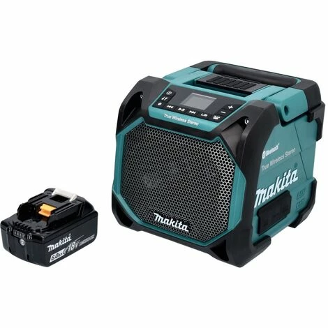 Die Firma Makita bietet mit dem DMR 203 einen robusten Bluetooth Lautsprecher der mit seiner IP64 Schutzklasse problemlos auch härteren Bedingung auf der Baustelle oder in der Werkstatt widerstehen kann. Der Lautsprecher kann mit bis zu 10 gleichen Lautsprechern gekoppelt werden und bietet dadurch auf der gesamten Baustelle eine optimale Beschallung. Hierbei sollten die Lautsprecher im Idealfall 10 Meter voneinander entfernt stehen, die maximale Ăśbertragungsrate liegt bei 30 Meter. Hierbei kann der Lautsprecher Wahlweise mit den 12 V max Akkus, den 18 V Akkus oder per Netzteil betrieben werden. Der Lautsprecher verfĂĽgt ĂĽber eine Bluetooth, AUX und eine USB Verbindung um den Lautsprecher mit dem Smartphone zu koppeln und dieses nebenbei ( per USB Anschluss ) auch aufzuladen. Die Firma Makita ist ein fĂĽhrender Hersteller fĂĽr Elektrowerkzeuge aller Art, der sich vor allem durch seine hohe Verarbeitungsqualität und sein riesiges 18 V Ă–kosystem auszeichnet.Â