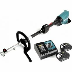 Umweltschonend und extrem kraftvoll, dass ist der DUX 60 Multifunktionsantrieb von Makita. Über 10 verschiedene Aufsätze ( nicht im Lieferumfang ) können angesteckt werden. Somit ist die Kosteneffizienz unschlagbar, man benötigt lediglich den passenden Aufsatz und keine Vielzahl an Geräten. Ob als Heckenschere, Kettensäge, Rasentrimmer, Sense, Bodenschneider oder Kehrbesen es scheint so als ob er alles kann. Alle Einsatzwerkzeuge sind komplett werkzeuglos wechselbar. Zwei 18 Volt Akkus ( nicht im Lieferumfang ) versorgen das Gerät mit extrem viel Power. Es ist empfohlen immer zwei gleiche Akkus zu verwenden. Makita hat den DUX 60 Multifunktionsantrieb mit der neusten Technologie ausgestattet, so ist er mit Xtreme Protect Technologie ( XTP ) optimal gegen Staub und Spritzwasser geschützt. Der leistungsstarke Motor verfügt über die Active Feedback sensing Technologie, welche das Gerät sofort beim Blockieren stoppt. Die dreistufige elektronische Drehzahlregulierung ist für sämtliche Anwendungen ausgelegt. Die Drehrichtungsumkehr ermöglicht die Entfernung von Grasschnitt. Der höhenverstellbare Rundgriff am Gerät ist individuell einstellbar auf Körpergröße, Aufsätze und die gegebenen Arbeitsbedingungen. Durch den im Lieferumfang enthaltenen Schultergurt ist ein kraftsparendes Arbeiten möglich.