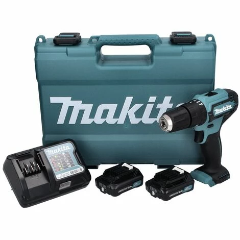 Das Makita HP 333 DWAE Set ist ein rundum sorglos Paket für Jedermann. Der gut verarbeitete Schlagbohrschrauber deckt sämtliche Anwendungen ab. Ob Bohren, Verschrauben oder Schlagbohren, dieser universelle Akku Schrauber ist ein wahres Multitalent. Die Spannung von 12 Volt ist für allerlei Arbeiten ausgelegt. Seih der Privatgebrauch, für den ambitionierten Heimwerker oder auch für Handwerker. Der HP 333 verfügt über zwei einstellbare Drehmomentstufen, eine LED Lampe, und einen Sanftanlauf. Mit der maximalen Bohreraufnahme von 10 mm ist ein großes Sortiment an Zubehör verfügbar. Dank der zwei mitgelieferten 2,0 Ampere Akkus kann einer Arbeiten, und der andere lädt in der Zeit. Der Schlagbohrschrauber, zwei Akkus und das Ladegerät finden Platz im Koffer und sind somit schnell, ordentlich und platzsparend verstaut. Makita ist ein führender Hersteller von Elektrowerkzeugen, eine lange Tradition sowie raffinierte Konzepte zeichnen das Unternehmen aus.