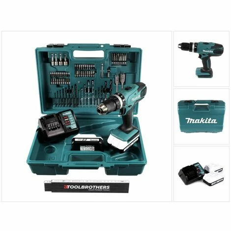 Der HP 457 ist ein 18 Volt Akku betriebener Schlagbohrschrauber von Makita mit einem staubgeschützten 2 Gang Planetengetriebe ausgestattet, wodurch mit 16 Drehmomentstufen und einer Bohrstufe gearbeitet werden kann. Der rutschfeste Handgriff mit eingelegtem Gummipolster sorgt für komfortables und sicheres Arbeiten und durch die starke Motorbremse garantiert der HP 457 exakte Schrauberarbeiten. Der Schlagbohrschrauber eignet sich diesbezüglich hervorragend zum Bohren, Schrauben und Schlagbohren. Geliefert wird der HP 457 Schlagbohrschrauber in einem Transportkoffer mit 74 tlg. Zubehör, zwei BL 1815G 18 Volt 1,5 Ah Akkus sowie dem DC 18 WA Ladegerät. Die G-Serie der Akkus, erkennbar am weißen oberen Rand des Akkugehäuses, ist nicht kompatibel mit der XPT 18 Volt Serie von Makita.