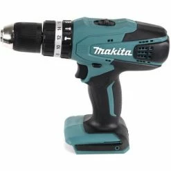 Der HP 457 ist ein 18 Volt Akku betriebener Schlagbohrschrauber von Makita mit einem staubgeschützten 2 Gang Planetengetriebe ausgestattet, wodurch mit 16 Drehmomentstufen und einer Bohrstufe gearbeitet werden kann. Der rutschfeste Handgriff mit eingelegtem Gummipolster sorgt für komfortables und sicheres Arbeiten und durch die starke Motorbremse garantiert der HP 457 exakte Schrauberarbeiten. Der Schlagbohrschrauber eignet sich diesbezüglich hervorragend zum Bohren, Schrauben und Schlagbohren. Geliefert wird der HP 457 Schlagbohrschrauber in einem Transportkoffer mit 74 tlg. Zubehör, zwei BL 1813G 18 Volt 1,3 Ah Akkus sowie dem DC 18 WA Ladegerät. Die G-Serie der Akkus, erkennbar am weißen oberen Rand des Akkugehäuses, ist nicht kompatibel mit der XPT 18 Volt Serie von Makita.