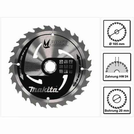 – 1x Makita M-FORCE Kreissägeblatt fĂĽr Holz 165 x 2,0 x 20 mm 24 Zähne ( B-32007 )