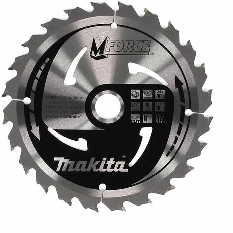 Das Makita M-FORCE Kreissägeblatt ist fĂĽr Holzarbeiten mit Handkreissägen geeignet und arbeitet akku- und motorschonend. Der besonders dĂĽnne, optimal ausgerichtete Grundkörper garantiert einen zuverlässigen Geradeauslauf. Die feingeschliffenen HW-Zähne sorgen fĂĽr saubere Schneidergebnisse und eine hohe Lebensdauer des Sägeblattes.Â
