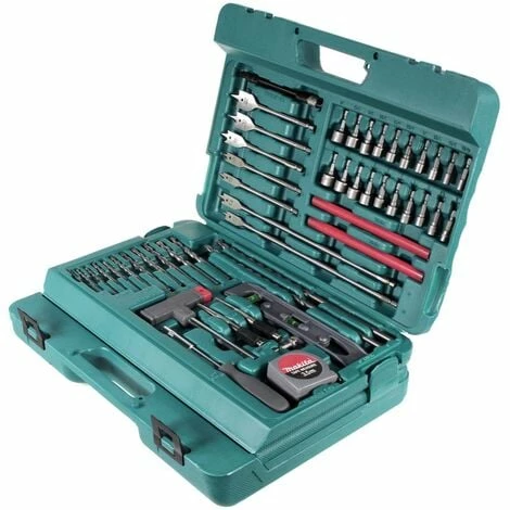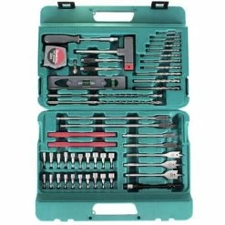 In diesem praktischen Koffer ist ein umfangreiches Zubehör-Set für diverse Akkuschrauber. Enthalten sind unter anderem Bohrer für Metall, Holz und Mauerwerk, Holzflachbohrer, Lochsägen, Bits in Pozidrive-, Torx-, Schlitz-, Sechskant und Vierkantausführung, Steckschlüsseleinsätze, eine Wasserwaage und ein Maßband, eine flexible Welle, Nagelhilfen und magnetische Handgriffe