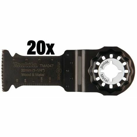 20x TauchsĂ€geblatt TMA047 mit einem 32 mm breiten und 50 mm tiefen Schneidblatt. Die TauchsĂ€geblĂ€tter haben eine besonders lange Lebensdauer und sind fĂŒr prĂ€zise Tauchschnitte in Holz und Metall geeignet. Mit Starlock-Aufnahme fĂŒr eine maximale KraftĂŒbertragung und einen schnellen Blattwechsel.